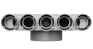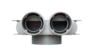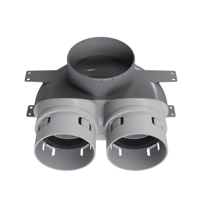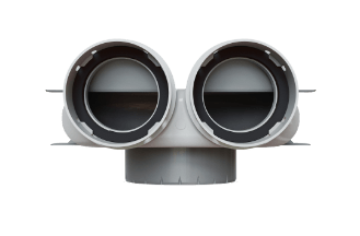 - Ustandaryzowana średnica zewnętrzna króćca skrzynki rozprężnej to Ø 123 mm pozwala na stosowanie dedykowanej przedłużki PE-FLEX lub innych przewodów o średnicy Ø 125 mm