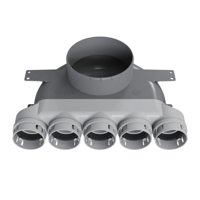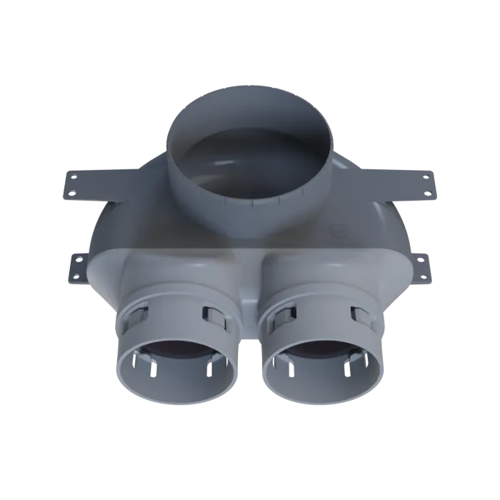 Wszystkie skrzynki rozprężne PE-FLEX PP dostępne są w wariancie z króćcem nyplowym służącym do przedłużenia lub mufowym umożliwiającym montaż anemostatu bezpośrednio w skrzynce rozprężnej – wszystko po to, abyś mógł dopasować odpowiednie rozwiązanie do każdej sytuacji na budowie.