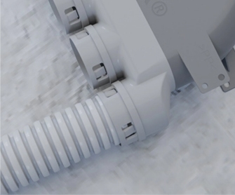 Zastosowane muf z systemem KLIK umożliwia bardzo szybki montaż kanałów wentylacyjnych w skrzynkach za pomocą jednego ruchu! I to bez konieczności ręcznego zakładania uszczelek na rury i używania specjalistycznych narzędzi. Dodatkowo system KLIK zabezpiecza przed samoistnym wypięciem się rury.