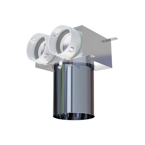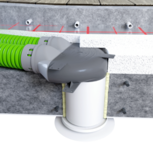 - Ustandaryzowana średnica zewnętrzna króćca skrzynki rozprężnej to Ø 123 mm pozwala na stosowanie dedykowanej przedłużki PE-FLEX lub innych przewodów o średnicy Ø 125 mm